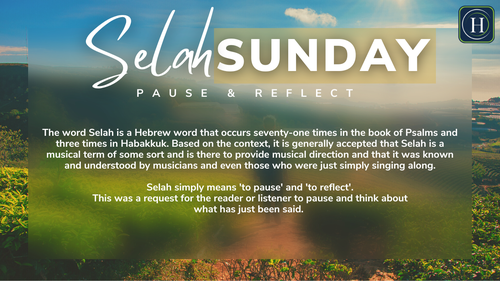 We have declared every 5th Sunday of 2025 to be Selah Sunday Week at The City of Hope Community Church. Selah simply means 'to pause reflect' and we are strategically taking the time to do just that in 2025.