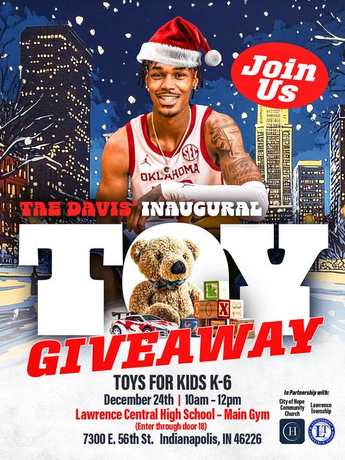 The Tae Davis’ Christmas Toy Giveaway is a collaborative effort between City of Hope Community Church, Lawrence Township, and the Tae Davis Foundation to bring joy, hope, and holiday cheer to children and families in our community. Your financial gift helps ensure every child is celebrated and every family experiences the spirit of generosity this Christmas season. Together, we are making a lasting impact—one toy, one smile, and one family at a time. If you would like to make a financial donation toward this community event, you may do so below. Your financial gift helps ensure every child is celebrated and every family experiences the spirit of generosity this Christmas season.